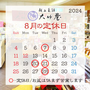 8月の定休日のお知らせ