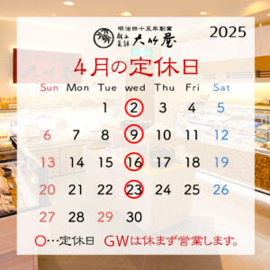 4月の定休日のお知らせ