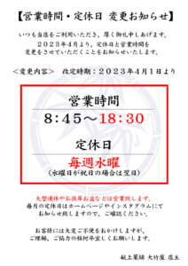 営業時間・定休日 変更のお知らせ
