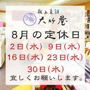 8月は2日、9日、16日、23日、30日にお休みをいただく予定です。
