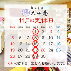 11月は1日、8日、15日、22日、29日にお休みをいただく予定です。